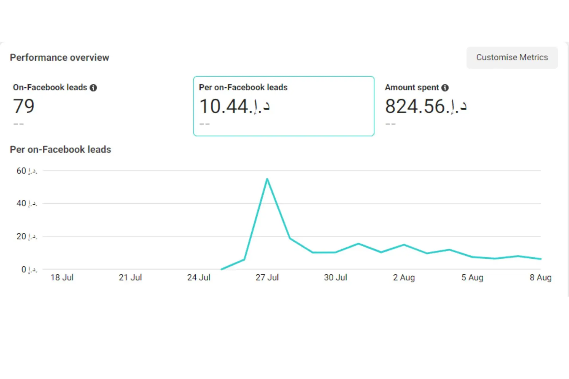 - Cost Per Lead (CPL) Improvement: The campaign achieved a substantial reduction in the cost per lead, dropping from an initial 70.87 dirhams to a highly efficient 10.44 dirhams.