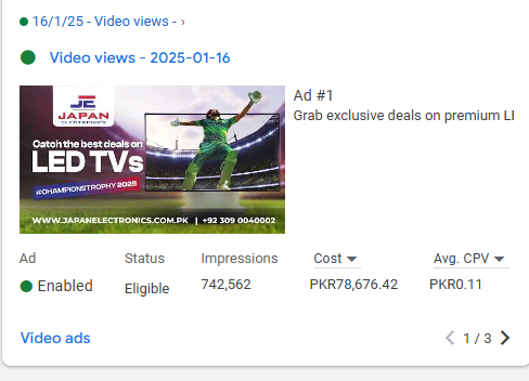 In the full year of 2024, the company spent 1.29 million PKR on ads. This investment generated a total conversion value of 1,685,052 PKR, indicating an ROAS of approximately 1.3x. While the campaigns were driving results, there was significant room for improvement in scaling revenue and optimising ad spend.