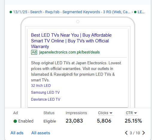 A leading brand in the consumer electronics industry approached me to manage their paid advertising campaigns. Their goal was to maximise return on ad spend (ROAS) and scale conversions while maintaining cost efficiency.